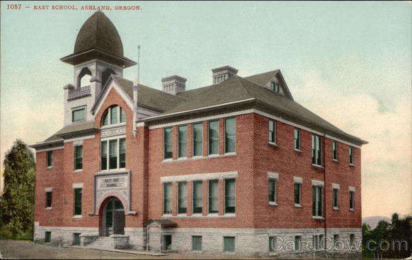 Front: 1087 - EAST SCHOOL, ASHLAND, OREGON. EAST SIDE SCHOOL 76 CECI 11 T Back: -Post Card- EDWARD H. MITCHELL. PUBLISHER, SAN FRANCISCO, THIS SPACE FOR ADDRESS ONLY