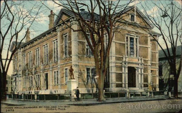 TOWN HALL, DAMAGED BY FIRE, DEC. 7TH 1907