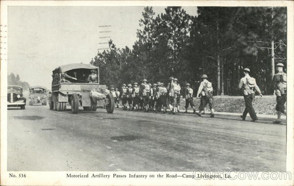 Motorized Artillery Passes Infantry on the Road-Camp Livingston, La.