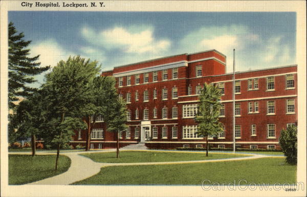Front: City Hospital, Lockport, N. Y. 69869 Back: MADE IN U. S. A 2507 "TICHNOR QUALITY VIEWS" REG. U.S. PAT. OFF. MADE ONLY BY TICHNOR BROS., INC., BOSTON, MASS. PLASTER NEWS COMPANY, LOCKPORT. N. Y