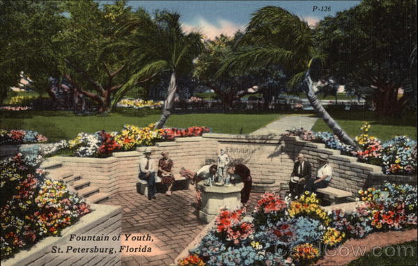 Front: P-126 Fountain of Youth, St. Petersburg, Florida Back: 80428 "TICHNOR QUALITY VIEWS" REG. U. S. PAT. OFF. MADE ONLY BY TICHNOR BROS., INC., BOSTON, MASS.