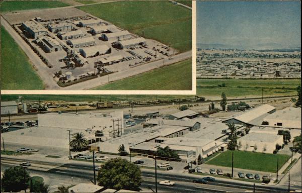 | Modern buildings house production, quality control, and administrative operations in Buena Park, California, where Nutrilite Food Supplements are prepared for exclusive distribution by Amway distributors. INSET: Extraction and concentration facilities for Nutrilite Food Supplements are nestled in hundreds of acres of fertile land at Lakeview, California |