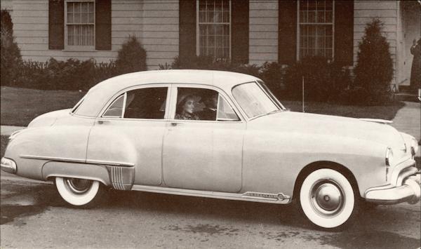 Front: ਦੀ ਲਾ w Back: DEALERS SUPPLY COMPANY DETROIT 35, MICHIGAN Card No. 44-H 1949 OLDSMOBILE 98 4-DOOR SEDAN