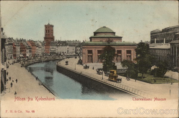 Front: 11 Hilsen fra København F. M. & Co. No. 96 ups Chorvaldsens Museum Back: VERDENSPOSTFORENINGEN. (UNION POSTALE UNIVERSELLE.) DANMARK BREVKORT - CARTE POSTALE Paa denne side skrives kun Adressen. (Côté réservé à l'adresse.)
