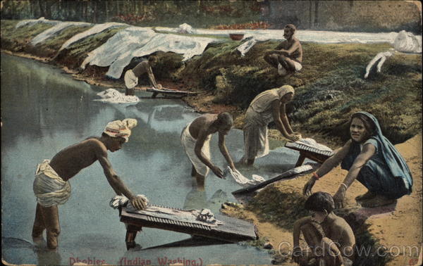 Front: Dhobies (Indian Washing.) Back: Leave Dada Write Here. me for you my lease send Zoome your gel-some toys. parola not my INDIA HALF ANNA 12 SFAC L. G. Juntur Bank of Bengy Rangoon Burma