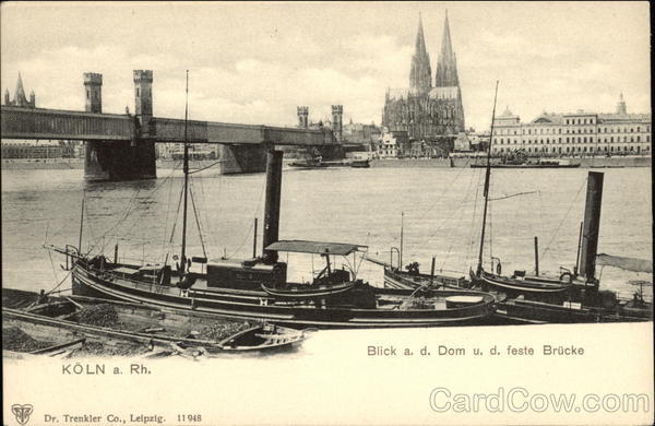 Front: KÖLN a. Rh. Dr. Trenkler Co., Leipzig. 11948 Blick a. d. Dom u. d. feste Brücke Back: POSTKARTE. Raw Ehm 5 Dee 1988
