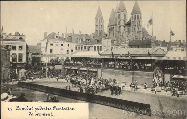 Front: TH CONT THIEMER TIME AU VIEUX CHENE 15 Combat pédestre-Prestation de serment. Gunna FABRIQUE DE TABACS FOUPRURES CHIL QUI 家校园 Back: TIALOLORE BRUX DESAI ******** ****