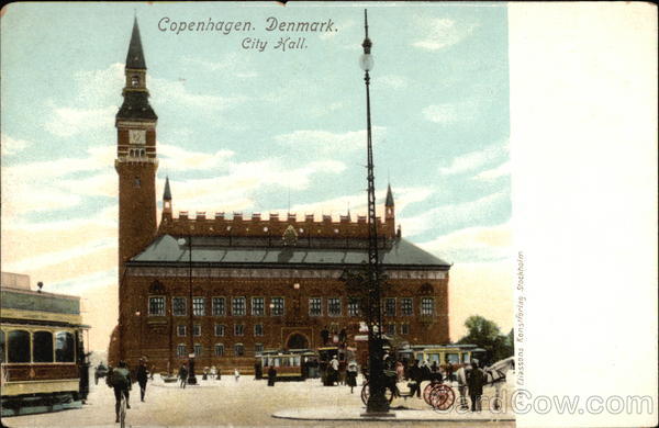Front: Copenhagen. Denmark. City Hall. 1.6 Axel Eliassons Konstförlag Stockholm Back: BREFKORT. POSTKARTE. CARTE POSTALE.