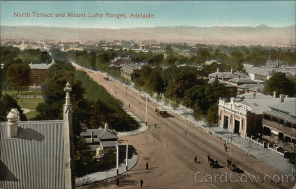 Front: North Terrace and Mount Lofty Ranges, Adelaide anst 300404 (JV) Back: The Valentine & Sons' Publishing Co., Ltd., Melbourne This space may be used for communication. S