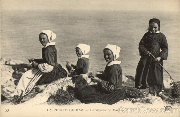 Front: 53 LA POINTE DU RAZ. Gardeuses de Vaches. ND Back: NEURDEIN FRÈRES, IMP. CRÉTÉ, SUCC. PARIS-CORBEIL. - B4 Carte Postale