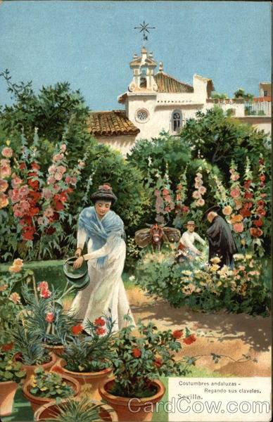 Front: Costumbres andaluzas - Sevilla. Regando sus claveles. Back: 29570 The Rotograph Co., N. Y., City. (Germany.) Two cents