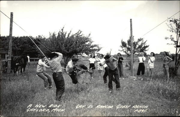 Front: & New A NEW RIDE GAYLORD MICH GAY EL RANCHO GUEST RANCH P-895 Back: CUVO ISOd ALL RIGHTS RESERVED THE L. L. COCK CO., MILWAUKEE