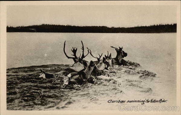 Front: Caribou swimming the Yukon River Back: MADE IN CANADA BY THE GOWEN. SUTTON CO. LTD., VANCOUVER, ES. ADDRESS