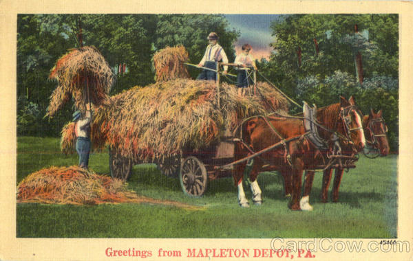 Front: 45466 Greetings from MAPLETON DEPOT, PA. Back: MADE IN USA * NYCE' Quality Colored Landscape Locals.