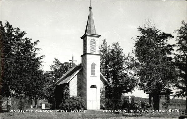 Front: SMALLEST CHURCH IN THE WORLD FESTINA NEAR CALMAR, 10WA B476 Back: All rights reserved - The L. L. Cook CÂș., Milwaukee