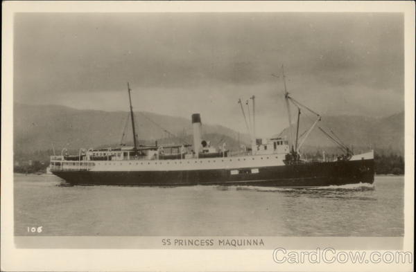 Front: 106 ***** SS PRINCESS MAQUINNA Back: MADE IN CANADA BY THE GOWEN. SUTTON CO, LTD., VANCOUVER. B C ADDRESS