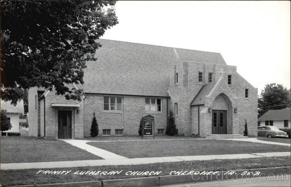 Front: WELCOME TRINITY LUTHERAN CHURCH CHEROKEE, IA. 85-B Back: ALL RIGHTS RESERVED-THE L. L. COOK CO., MILWAUKEE -Kodak- | BR Paper --