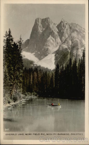 Front: 315. EMERALD LAKE NEAR FIELD. B.C., WITH MT. BURGESS, 8463FEET. Back: MADE IN CASADA BY THE GOWEN, SUTION CO, LID.. Vist OUVER, B C ADDRESS