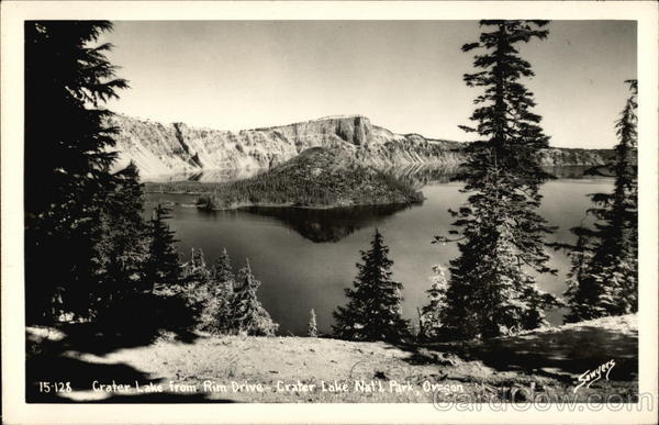 Front: 15-128 Crater Lake from Rim Drive-Crater Lake Nat! Park Oregon Sawyers Back: 24₂ Lh b C #8-97 400 1 HERE 1