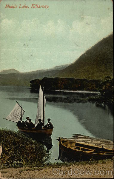 Front: Middle Lake, Killarney 27520 M Back: Valentine, Dublin M. A. Hogan With our love VALENTINE'S SERIES FAMOUS THROUGHOUT WORLD 21 FINAL REVENUE SEA Miss Sallie wood 1464/2 31 Augustin 81. Quebe & P.Q. 58 Dewey Canada Worcester mass NNY