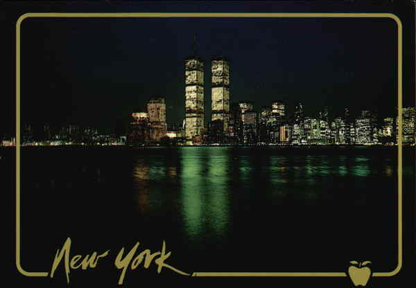 Manhattan skyline is reflected in New York Harbor, as seen from