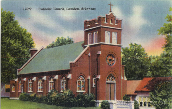 Front: 17077 Catholic Church, Camden. Arkansas Back: A "COLOURPICTURE" PUBLICATION, BOSTON 15, MASS., U. S. A LITTLE ROCK, ARKANSAS SOLD BY QUAPAW PRINTING CO.