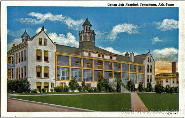 Front: Cotton Belt Hospital, Texarkana, Ark.-Texas 9A233-N Back: DISTRIBUTED BY HALE PARKER, TEXARKANA. U. S. A.
