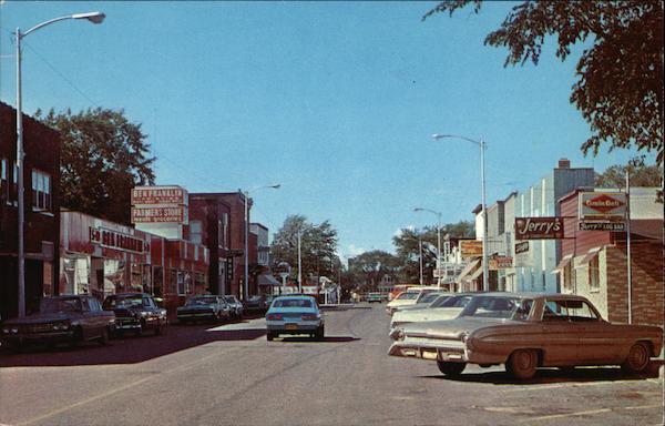 Front: BEN FRANKLIN the RTINS FARMERS STORE meals groceries arias TURNE PAKE PETER Jerry's AIR CONDITIONED Grain Bell Jerry'S LOG BAR Back: Main Street, Bruce, Wisconsin. Don Bingham Post Cards, Medford, Wisconsin 54451 14754 Ilm 20py V/19