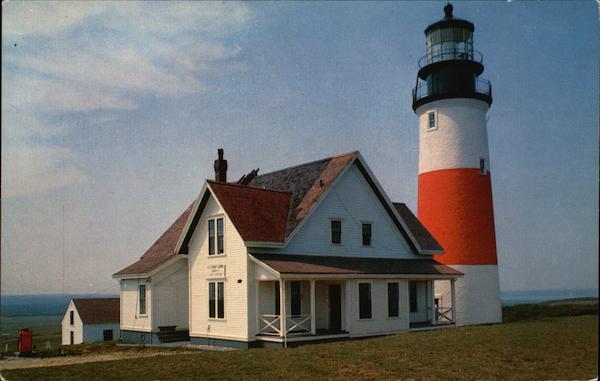 "Greetings from Nantucket, Mass." SANKATY HEAD LIGHTHOUSE, SIASCONSET, built in 1849. The beacon light is one of the most powerful in New England. Kodachrome by Louis Dormand Pub. by Louis Dormand, Riverhead, Long Island, N. Y. 3270 Address