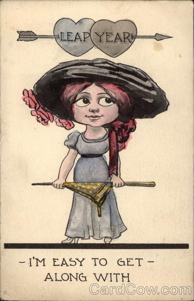 Front: LEAP YEAR - I'M EASY TO GET- ALONG WITH Back: sir hul of stack of Re you will S.105 FEB not Valentin ss RA CEN Edith Lundin 970 Edmund St. St. Paul Minn