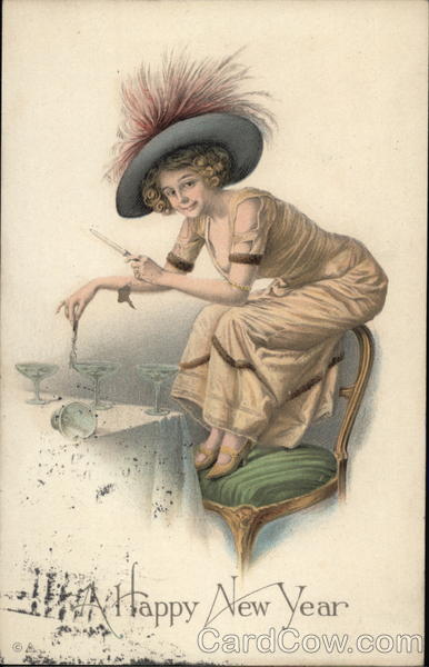 Front: Happy New Year Back: 3.56 NEW YEAR NO. 50 POST CARDW COPYRIGHT HENLITHCO MTWA New Years wisher Fann Jim & March SK L M ADDREM 1916 WIS U.S.PO Mr+Mrs Joe Schiels ilsville Wis
