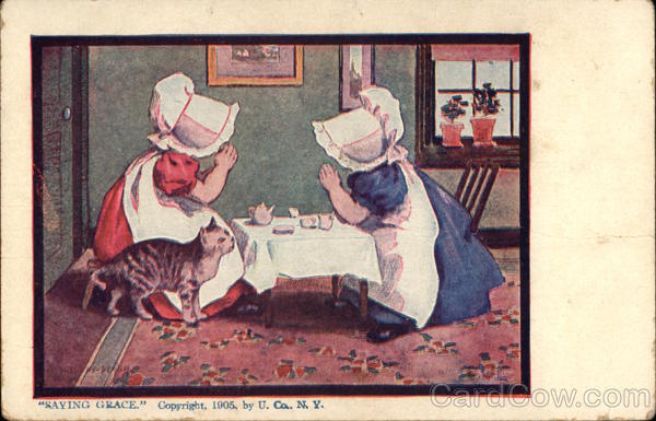 Front: V-DI/AN> 321 QU "SAYING GRACE." Copyright, 1905, by U. Ca.. N. Y. Back: 503 This space is for the This space may be used for Correspon- dence nothing to say miss Clara Brussen blick Wis R R. #1. Box 90, TWO CENTS