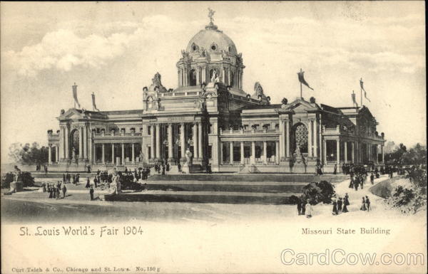 Front: St. Louis World's Fair 1904 To ne pome Curt Teich & Co., Chicago and St. Lous. No. 150 g MISSOURI Missouri State Building Finder Back: U. S., Canada Foreign Countries 2 Cents. 33151 Printed in Germany.