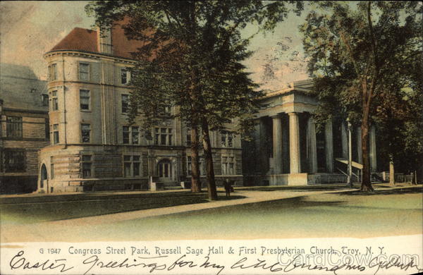 G 1947 Congress Street Park, Russell Sage Hall & First Presbyterian Church, Troy, N. Y.