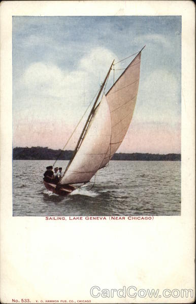 Front: SAILING, LAKE GENEVA (NEAR CHICAGO) No. 533. v. 0. HAMMON PUB. CO., CHICAGO خاه Back: Marian, FOREIGN, TWO CENTS.