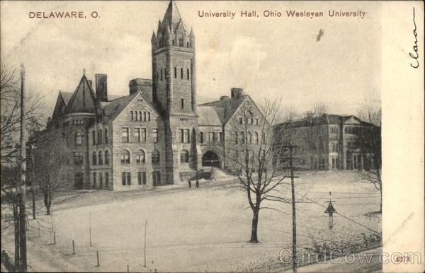 Front: DELAWARE, O. University Hall, Ohio Wesleyan University 전판 4373 Back: Delaware, Ohio H. S Latham, Publisher, 21 W. Winter St. PEK POŠMAY AWARE 5-PM OHIO 19 09 U.S.POSTAG Mir Gertrude Roose Perrysburg Olio 0