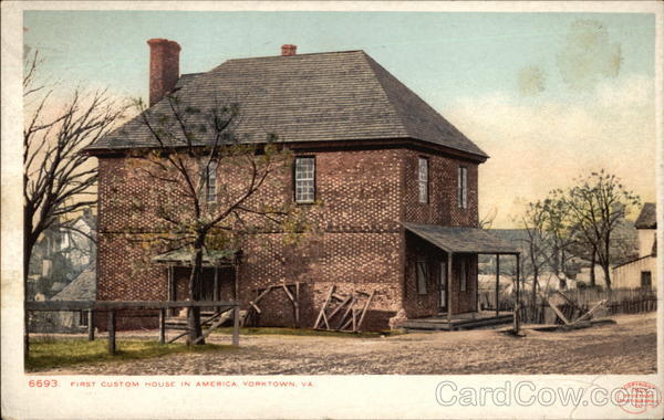 Front: 112 6693. FIRST CUSTOM HOUSE IN AMERICA, YORKTOWN, VA. 1903. BY DETROIT PHOTOGRAPHIC CO. Back: FOREIGN. TWO CENTS
