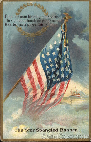 Front: For since man first together came In righteous bonds no other name Has borne a purer fairer fame. The Star Spangled Banner. Back: POST CARE route DECORATION DAY SERIES NO I.
