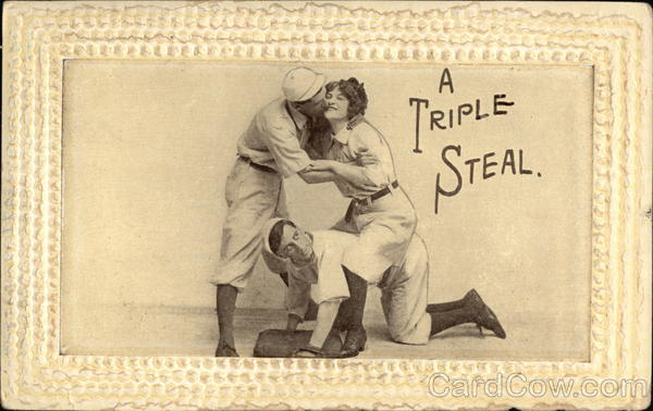 Front: TRIPLE STEAL Back: no Post (ARD Harry L. Parson cal. Kern Co Wasc ΠΌ. Hello Harry, mama just left. have been helping Retta. got a lot of new songs. adance at white Ruien to-night. Tennie