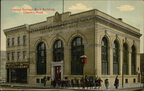 Front: MIAS Chelsea Savings Bank Building, Chelsea, Mass. ELECTRIC SAFETY ECONOMY CHELSEA SAVINGS BANK Back: 1c to United States Canada or Mexico 2c to all other Countries.