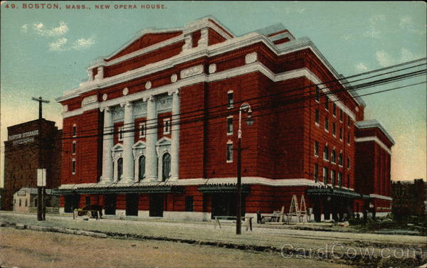 Front: 49. BOSTON, MASS., NEW OPERA HOUSE. BOSTON STORAGE ala ***** Back: THIS SPACE MAY BE USED FOR COMMUNICATION AND CANADA, FOREIGN, TWO CENTS.