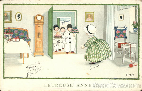 Front: дізи 71 433 KRE Lorne HEUREUSE ANNÉE! PEBNER. Back: D. Merry Xames and Happy and prosperont New Year for 1924. Billy lly and Polo M. M. Nr. 1235 ***to Henry and Lonne a