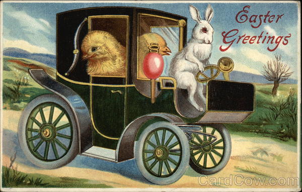 Front: 11 Baster Greetings Wighet 674 Back: thel Harriman consin as ever J.L.W great Dear cousin. This card is sent with kind regards and Dostane OS 17° لانا OHIO R.F.S. No 1. Miss Bessie Elliot Cadiz This side for the Address only.