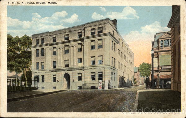 Front: Y. M. C. A., FALL RIVER, MASS. 309 WWW.W Back: Pub. by M. Mark, Fall River, Mass. ODK DHP POSTY 110943 3) THIS SPACE FOR ADDRESS ONLY