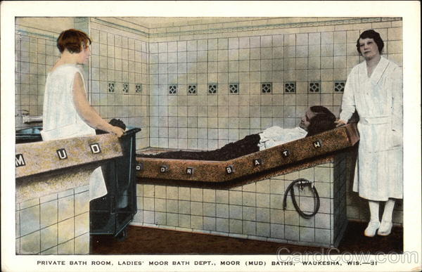 Front: U D 887 && E PRIVATE BATH ROOM, LADIES' MOOR BATH DEPT., MOOR (MUD) BATHS, WAUKESHA, WIS.-31 Back: MADE IN U.S.A. BY E. C. KROPP CO., MILWAUKEE- 13497 TO ANYWHERE IN U.S. VIA AIRMAIL Co. 4.00