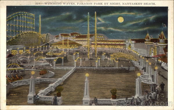 Front: /4047 310:-WITCHING WAVES, PARAGON PARK BY NIGHT, NANTASKET BEACH, 11 NZNZNZNN *** Back: Pub. by United Art Co., Boston, Mass. MADEMUSA STAMP HERE