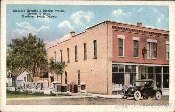 Front: Madison Granite & Marble Works, Hexom & Sons, Madison, South Dakota. Ull 11 Back: E. C. KROPP CO.. MILWAUKEE DHP 22219 Co