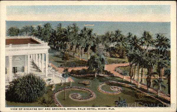 Front: om VIEW OF BISCAYNE BAY AND GROUNDS, ROYAL PALM HOTEL, MIAMI. FLA. Back: PUB. BY THE H. & W.B & Drew & Jacksonville Fl«. MATISTIC SERE казнать FRYSF 2- A-76016 FOR CORRESPONDENCE ONLY Place the Stamp here