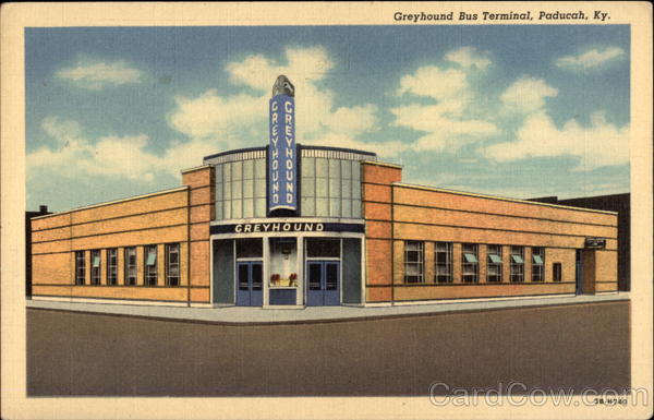 Front: Greyhound Bus Terminal, Paducah, Ky. GREYHOUND 3B-H740 OZCOH <EPE CREY HOUNO Back: WILSON'S BOOK & STATIONERY STORE, PADUCAH, KY.