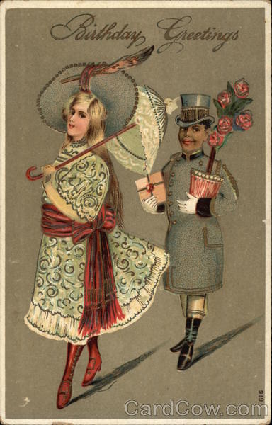 Front: Birthday Greetings 616 Back: Cartolina Postale - Levelezö -Lap Brefkort Briefkaart- Brevkort Tarjeta postal - Carto postal Dopisnice. From Mary, Margaret, and John Dwelly. - -